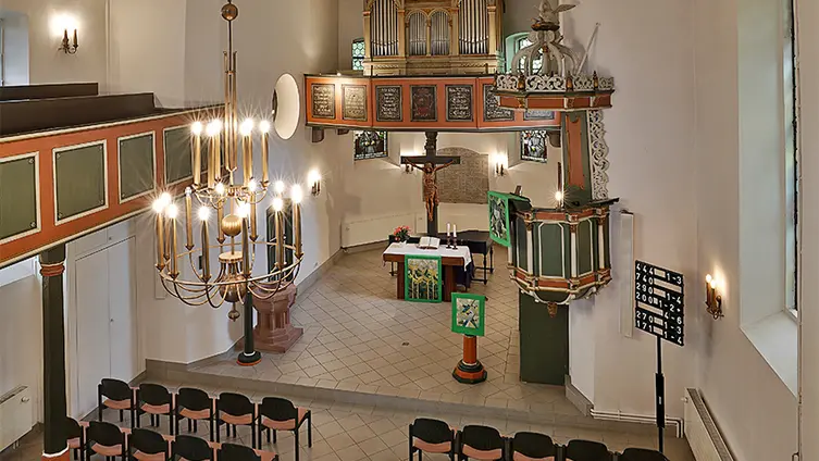 Unsere Kirche stammt aus dem Jahr 1754. Im damaligen Barockstil errichtet, war sie zunächst ohne Turm und ohne Orgel, innen weiß getüncht und ohne Bildschmuck und Ausmalung. Der Turm wurde 1768 angebaut und beinhaltet zwei Glocken. Die mit vielem Schnitzwerk vergleichsweise üppig ausgestaltete Kanzel wurde 1775 eingebaut.